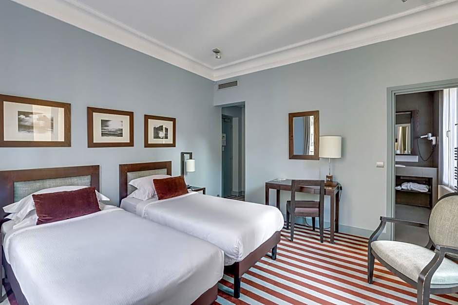Decorated in purple tones, these spacious rooms feature a large desk, a small dressing room and an private bathroom with a heated towel rail. Bathrobes are provided. There are tea and coffee making facilities.